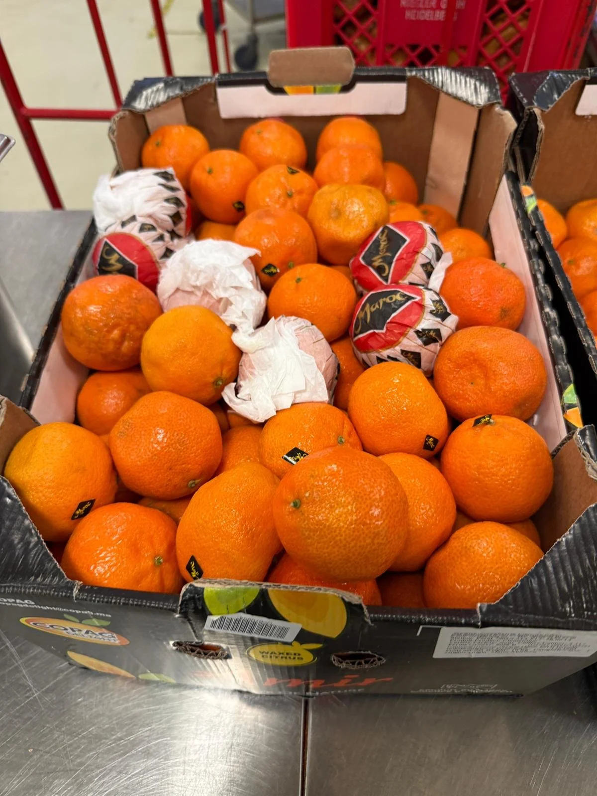 February 2026 update: Note that friends still back at the Heidelberg Patrick Henry Village camp have provided additional photographic evidence of conditions there (the odd wrapping of presumably moldy oranges [I saw with my own eyes plenty of examples of moldy fruit offered up without wrapping] is part of an attempt to get compensation for food served as part of a per-piece contract?).